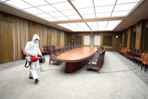 - Ruang pertemuan yang digunakan harus didesinfeksi minimal setiap hari.