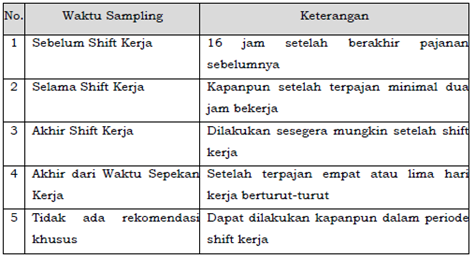 Tabel 1. Kriteria Waktu Sampling Pemantauan Biologi (Permenkes 70/2016)